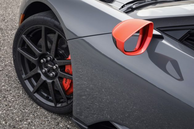Cette édition limitée de la Ford GT n’a jamais utilisé autant de fibre de carbone et propose de nouveaux coloris. L’habitacle se pare de deux bandes en fibre de carbone, assorties aux bas de caisse et aux jantes, également en carbone. Les les seuils de porte s’habillent aussi de fibre de carbone mat, comme les sorties de ventilation d’air et la console centrale.