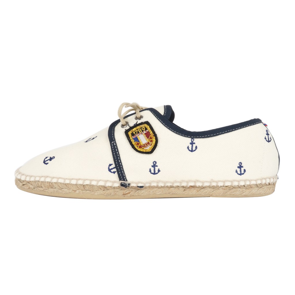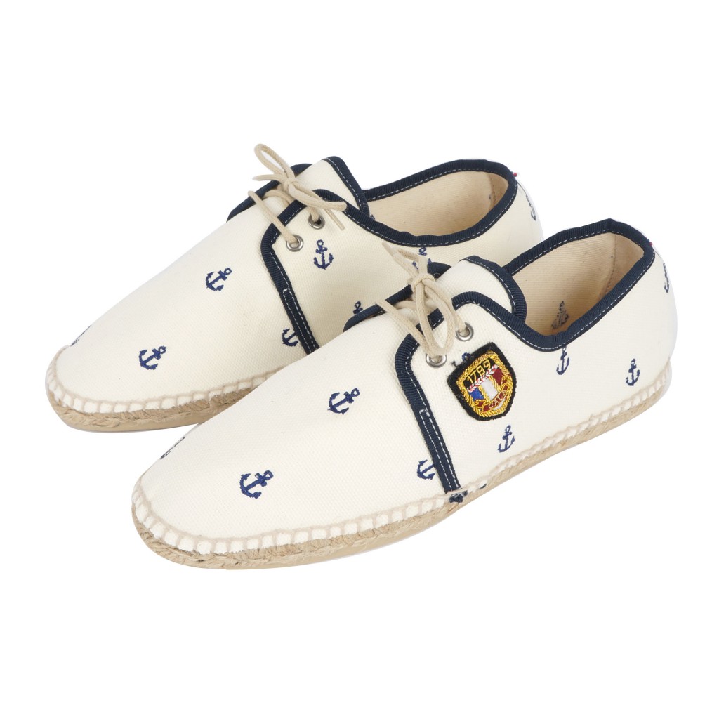 Pour cette nouvelle collaboration, le thème choisi par les deux marques fut « le bain de mer ». Vous découvrirez ainsi un duo composé d’espadrilles et d’un cabas coordonnés « Crazy Nautical » 100% coton avec une motif « ancres », discret et élégant qui séduira ces dames pour la période estivale.