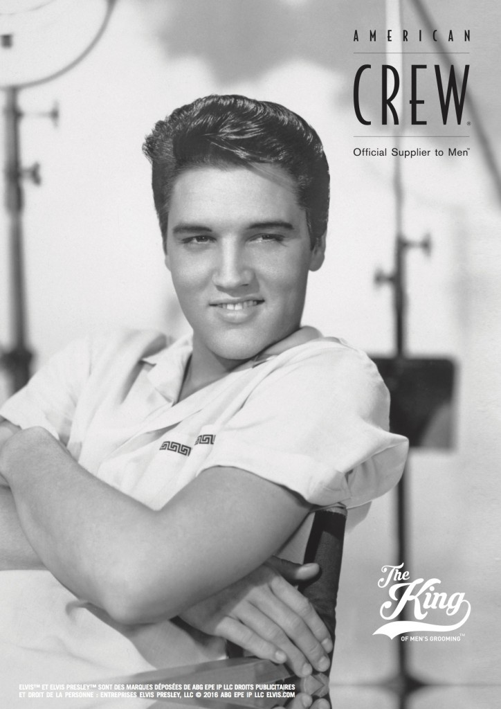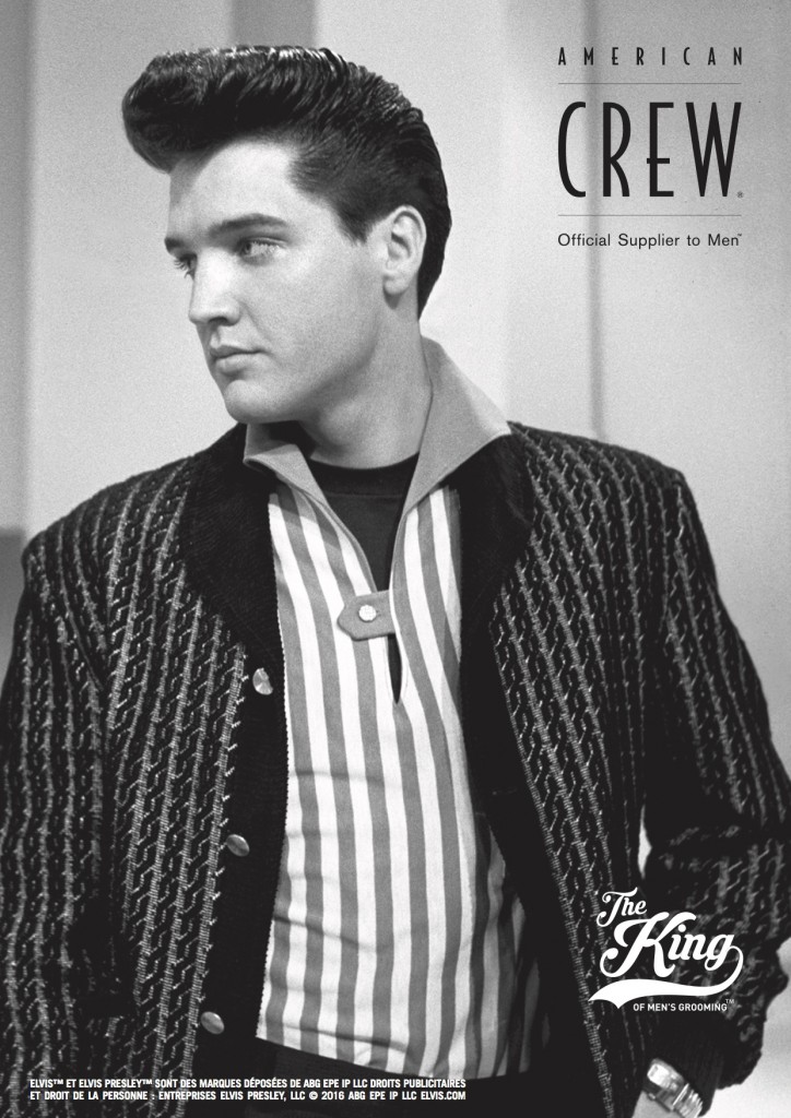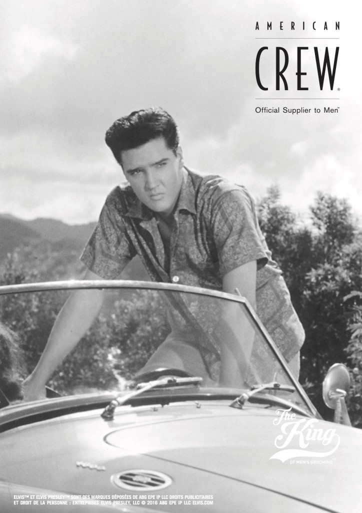 American Crew joue la carte du « King » Elvis Presley. Véritable dandy du rock, Elvis continue, encore aujourd’hui, d’inspirer des hommes de tous âges. American Crew présente cet icône au look emblématique comme le « King of Men’s GroomingTM« .