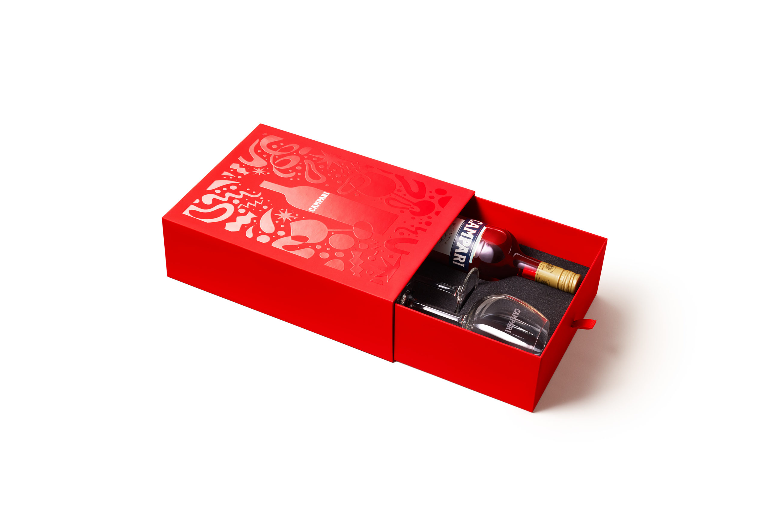 « L’univers de Campari m’a inspiré un coffret à la fois pop, graphique et élégant. J’ai ainsi cherché à le traduire avec un motif éclatant qui retranscrit la fraîcheur du Campari Tonic et sa couleur rouge si iconique. », déclare Quentin Monge.