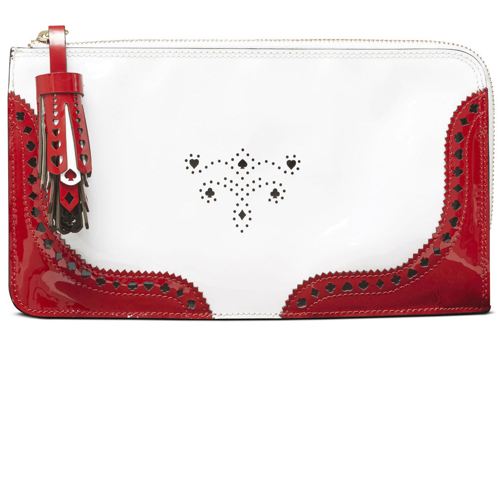 Cette collection capsule, Alice de l’autre coté du miroir comprend des chaussures, un porte clef et une pochette. Influencée directement par le film, cette collection emblématique met à l’honneur les symboles fort qui caractérise la Reine Rouge : cœur, pique, carreau et trèfle. Clergerie en nous imposant son style nous transporte directement de l’autre côté du miroir. La marque Clergerie a toujours été synonyme de créativité et de design pour la femme confiante et audacieuse. Cette collection, célèbre la forte éthique de la Maison Robert Clergerie et l’univers éclectique de Alice de l’autre côté du mirror: