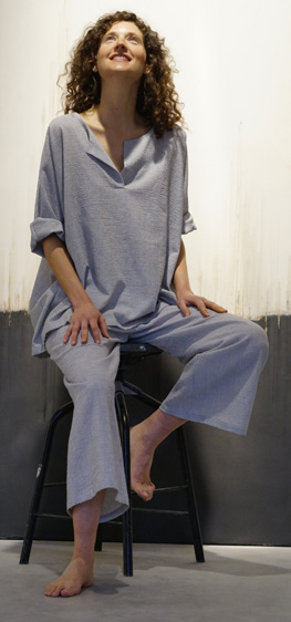 Pour cette collection capsule, Albane Olika a créé spécialement quatre modèles en tissu bio faisant référence à l’univers de Karwan. Elle comprend des tuniques et pantalons assortis ou coordonnés pour passer du bain au spa, toutes de grand confort et élégantes. Comptez 90 € pour le pantalon, large ou étroit, 140 € pour la tunique courte et 150 € pour la tunique longue. Des matériaux de l’univers maison Karawan seront également mis en scène, pneu recyclé du Vietnam, laiton des ferblantiers de Delhi…