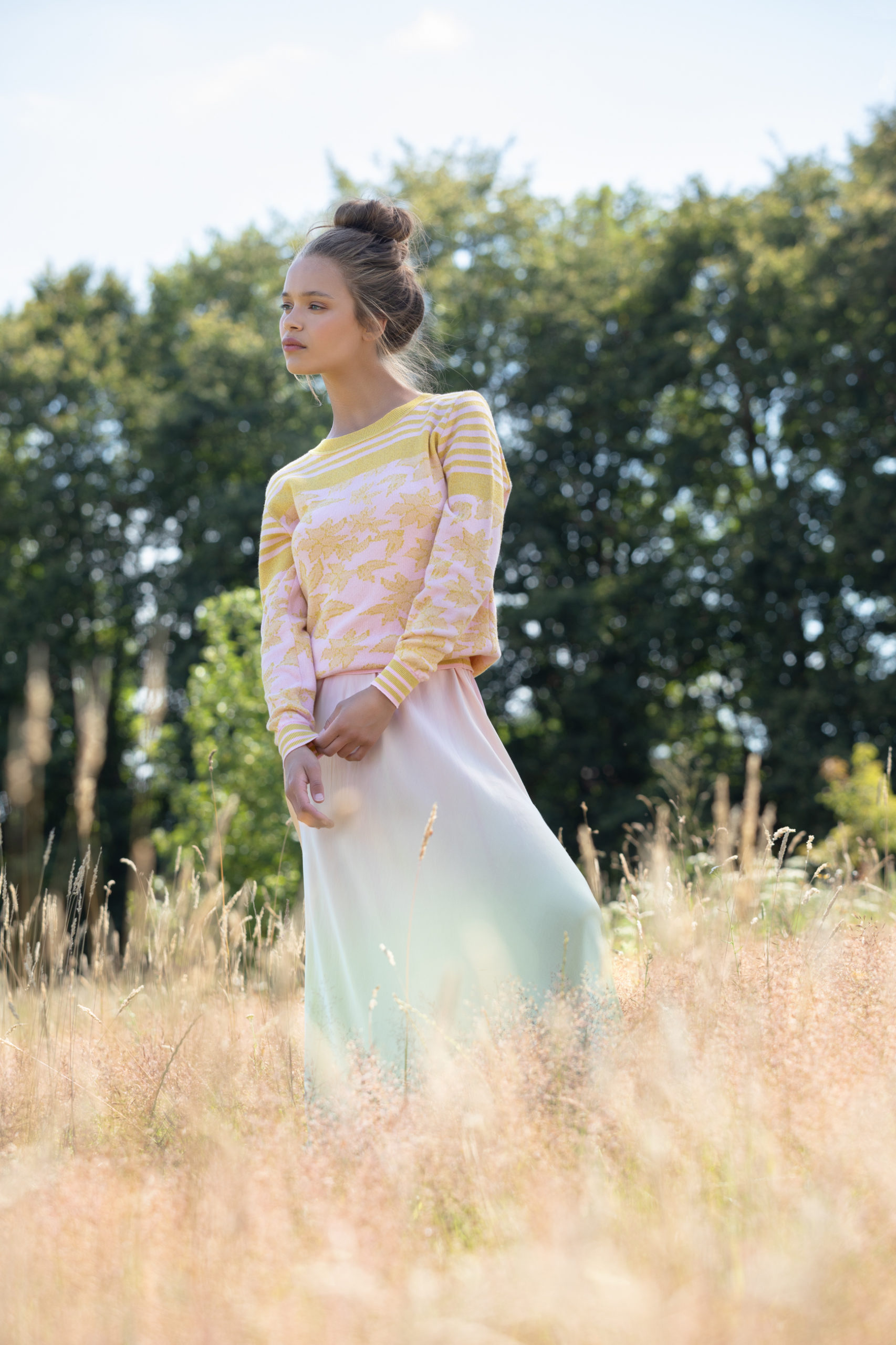 Imprevu entretient le désir de tourner la page mode forcément trop sage de l’année écoulée, avec la fantaisie d’imprimés forts sur des couleurs profondes. Une intuition des beaux jours à venir, aux pièces portables immédiatement et qui garantit l’exclusivité de ses séries limitées. Des couleurs et des contrastes pop, féminins et assumés, pour se distinguer, et accorder les jours qui rallongent à la pétillance de sa personnalité. Les imprimés tropicaux, sur base douce ou plus intense, font le jour et la nuit d’une envie de couleurs, en total look.