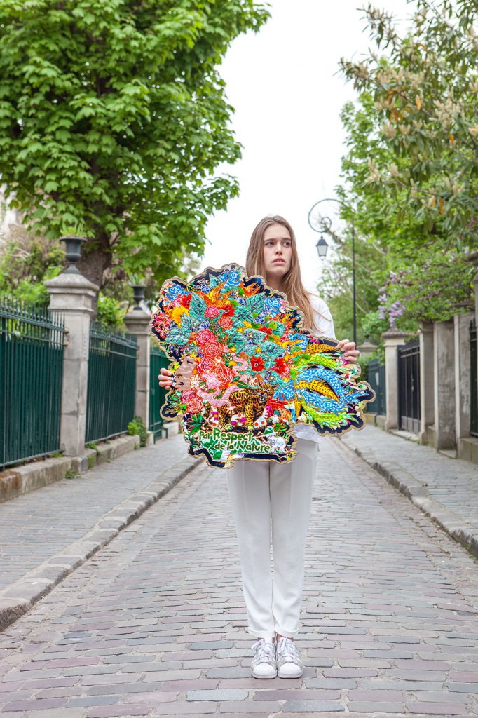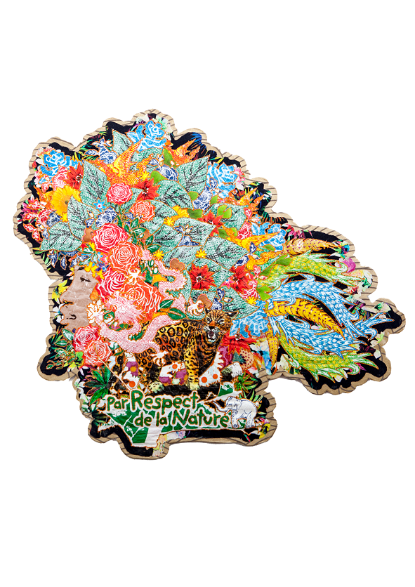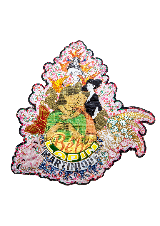 A travers cette collection, composée de quatre tableaux uniques, Charly nous dévoile son art. C’est en partant de sacs de riz et de plastique, des matériaux non recyclable, que l’artiste les transcende en patchworks inédits. La couture, la broderie et la peinture sont utilisées afin de mélanger les matières et techniques. C’est un voyage onirique et poétique qui prend la forme d’un blason. Ses créations sont absolument toutes uniques et finement réalisées et offrent une version de la femme telle que la voit l’artiste : tantôt mère nature, amante, beauté ou encore fécondité.