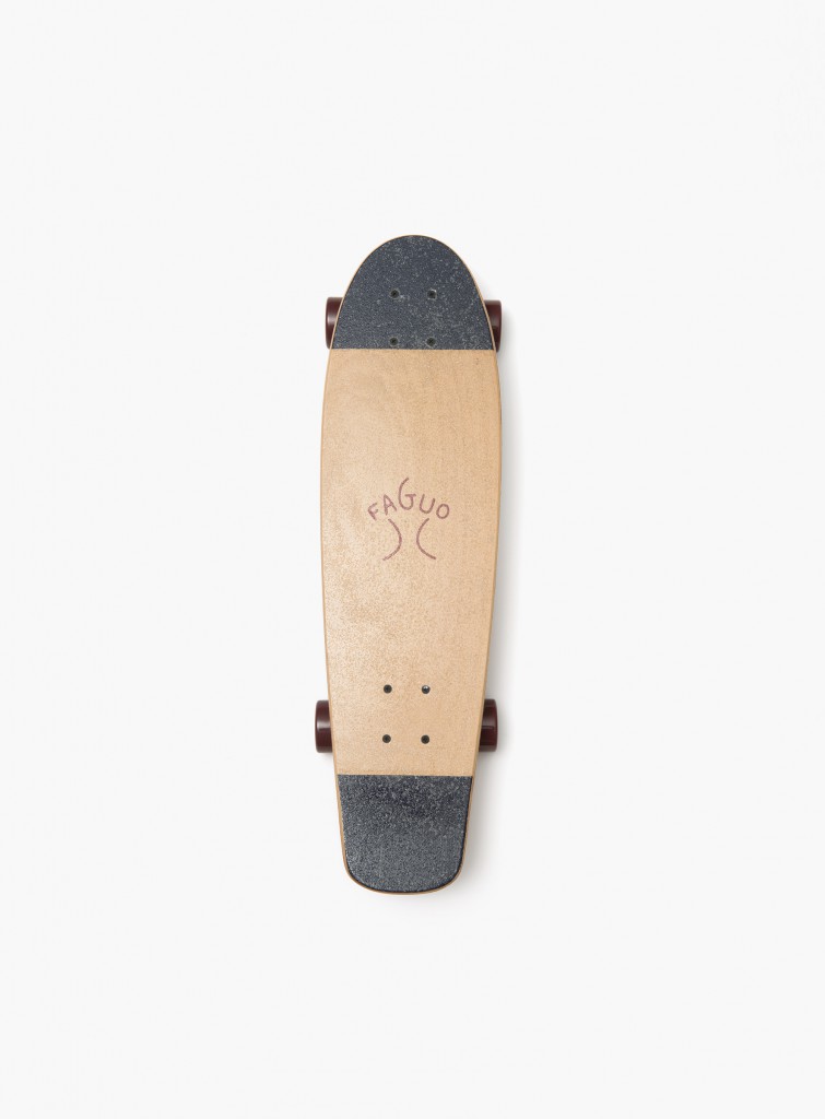 Fidèles à l’identité de Faguo, les vêtements issus de la collaboration avec Monoprix affichent des coloris sobres, mais des slogans pleins d’humours : « Homme des bois » ou encore « jeune pousse », tous ont un rapport avec la nature. Des motifs dessinant des feuilles sauvages s’impriment, quant à eux, aussi bien sur de la vaisselle que sur les chaussons de bébé. Les deux enseignes ont même mis au point, entre autres pièces uniques à découvrir d’urgence, un skate en bois pour les passionnés de glisse sur le béton.