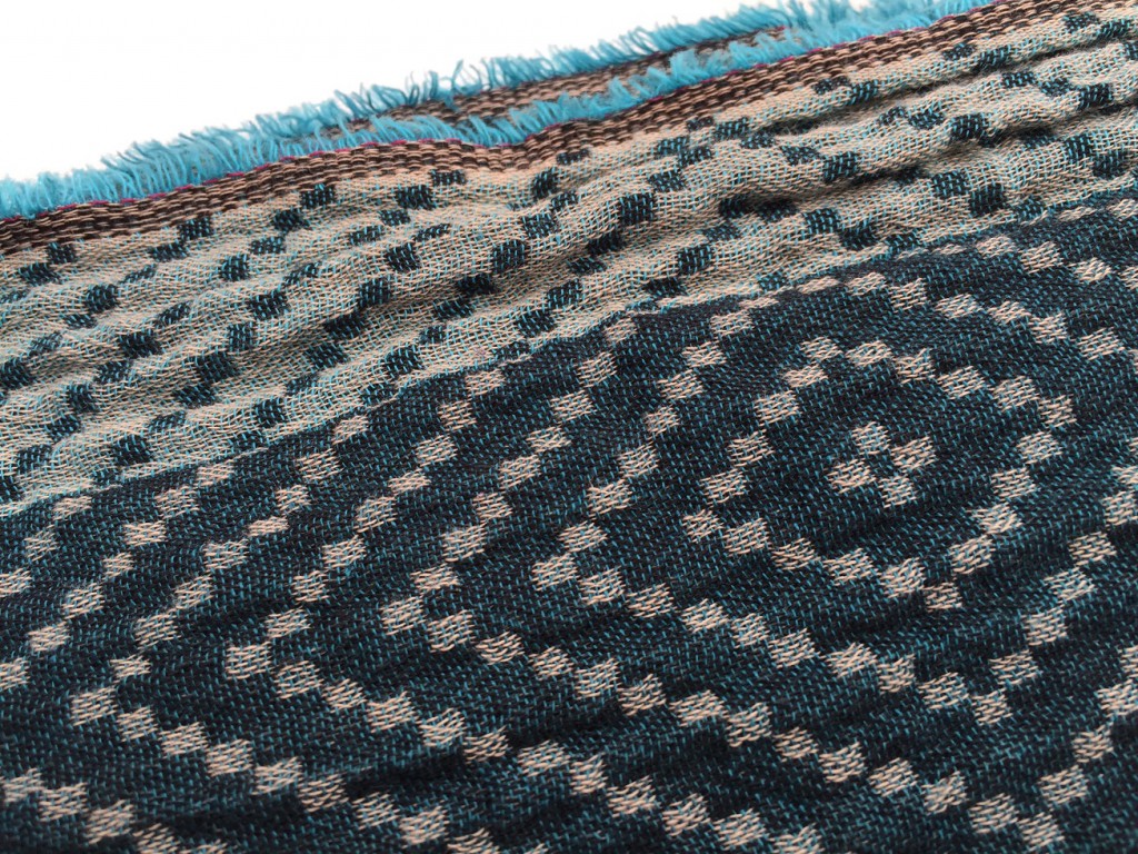 Tissées en France, à l’aide d’un coton biologique, ces écharpes reprennent des motifs phares de Six & Sept, en particulier le motif « Labyrinthe » créé exclusivement pour sa collection printemps-été 2016.