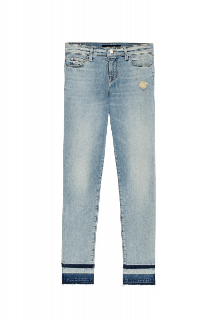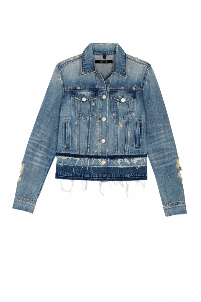 goût du jour par J Brand qui le met en avant grâce à des techniques de construction et de délavage lui redonnant du style. L’ourlet se laisse découvrir dans une palette de bleus plus ou moins délavés après avoir été déconstruit, remonté et recousu. J Brand le décline sur une sélection de vestes, de jeans skinny ou culottes.
