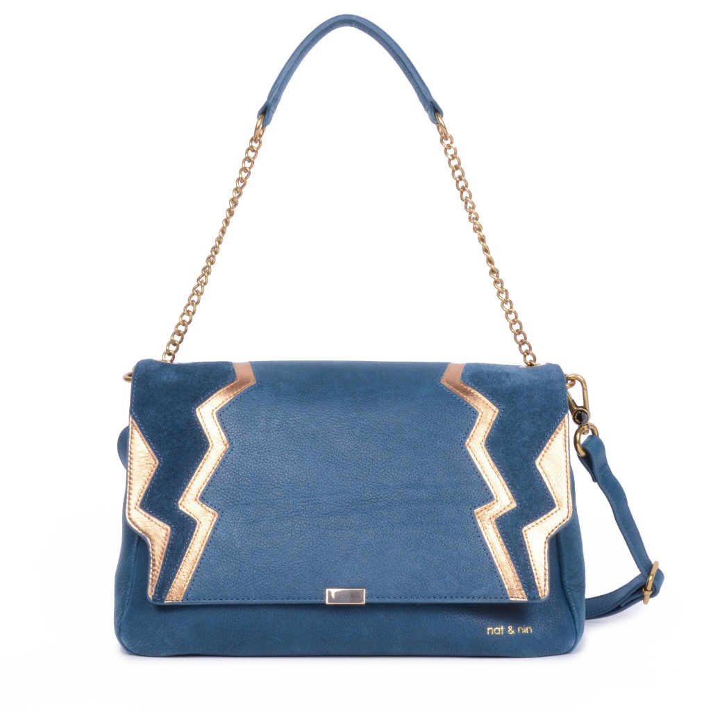 Nat & Nin, la marque aux sacs tendances, lance une collection capsule au look résolument graphique et à l’esprit art déco, avec son patchwork de cuirs et ses éclairs couleur or métallisé. Au programme : 4 modèles dont des créations exclusives, du sac porté épaule à la pochette, déclinés dans un cuir de vachette noir scintillant (Black dream) ou bleu vintage (Blue Dream).