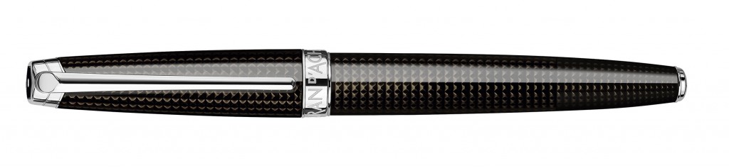 Sous la laque translucide noire de l’édition anniversaire Léman de Nuit, on peut découvrir le minutieux travail de gravure des maîtres artisans de la Maison Caran d’Ache. Ce guillochage au motif clou de Paris apporte des points de lumière et de brillance au corps.