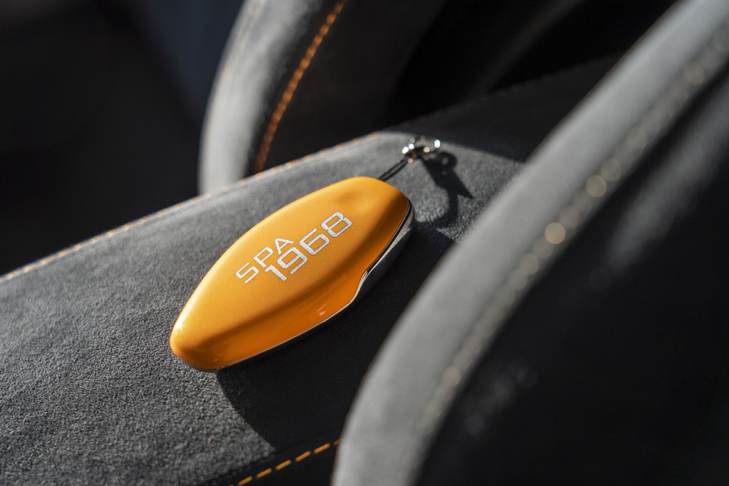 Afin de commémorer la première victoire de Bruce McLaren, à Spa, lors du Grand Prix de Belgique de 1968, McLaren Brussels célèbre cet anniversaire en proposant trois exemplaires de 720S Spa 68 Collection. Construit par MSO, le trio de 720S se distingue par sa peinture orange MSO Bespoke Anniversary évoquant la livrée de la voiture de course de 1968. Ces véhicules arborent d’autres signes distinctifs comme le tracé argenté du circuit de 14 km placé à l’avant du passage de roue arrière, un motif que l’on retrouve également brodé sur les appuis-tête. Les seuils de porte en carbone reçoivent un marquage « 1ère victoire de McLaren F1 dans le Grand Prix de Belgique le 9 juin 1968 – Bruce McLaren » et la clé de contact est sérigraphié Spa 68. Naturellement une plaque commémorative et des coutures contrastées MSO Bespoke en fil McLaren orange distinguent l’habitacle de ce modèle. Cette McLaren repose sur des jantes légères MSO Bespoke Satin Black à 5 doubles branches qui tranchent de façon spectaculaire avec l’orange de la carrosserie