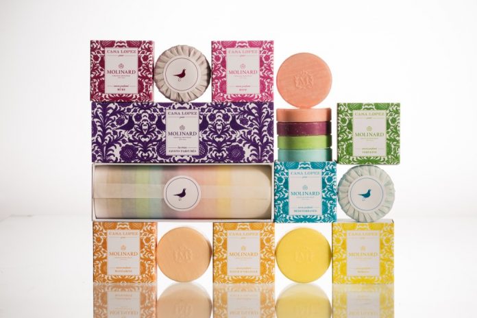 Coffret 13 savons Molinard x Casa LopezDans ce coffret, on découvre avec plaisir 13 savons parfumés aux senteurs évocatrices du Sud de la France : Mûre, Jasmin, Rose, Fleur d’Oranger, Citron, Mandarine, Orange-Cannelle, Verveine, Menthe-Romarin, Méditerranée, Mimosa, Vanille, Miel.
