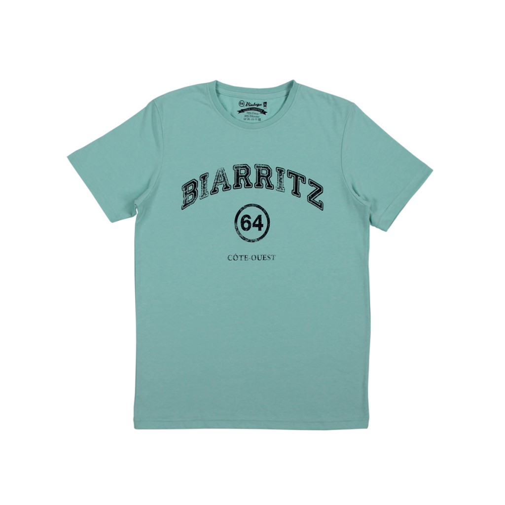 Ainsi la collection Héritage comprend 7 t-shirts en coton chiné aux coloris océan, bleu jean ou gris. 64 a volontairement donné un effet vieilli à ses imprimés pour offrir un aspect vintage à la collection. Le design des t-shirts n’est pas le seul à évoquer la côte ouest. Les noms de ces t-shirts s’inspirent également de l’art de vivre dans le pays basque, des activités iconiques de la région telles que le rugby, le surf, la pelote basque, etc. Nous retrouvons par exemple les t-shirts « Haka », « Night Rhune », « Bayonne by Night », « H2O » ou encore « Apéro Rugby ».