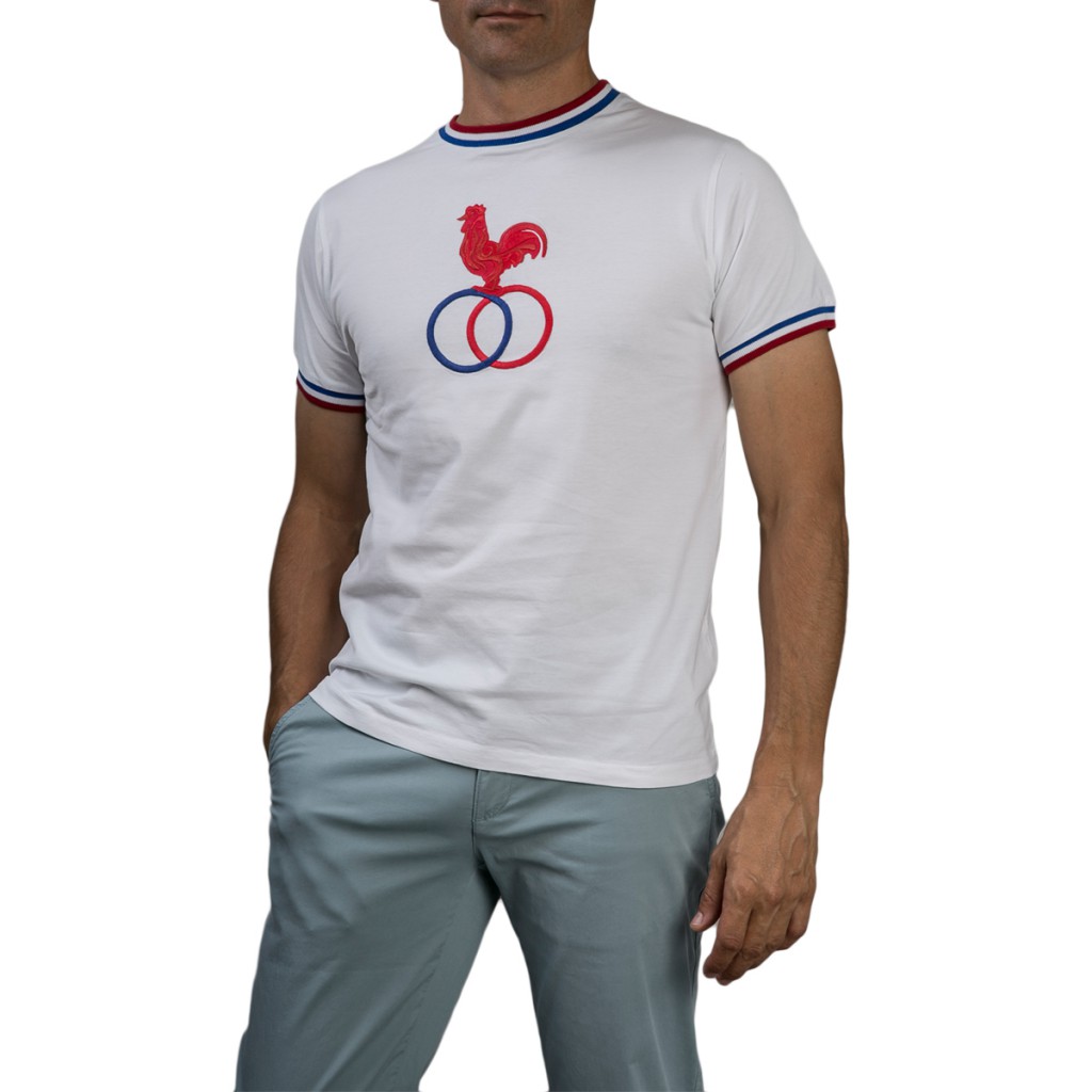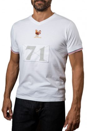 Les t-shirts Abrahams et Liddell sont accompagnés d’un polo paré du drapeau britannique brandi par les athlètes britanniques des Jeux Olympiques de 1924. Quant au t-shirt Guillemot, il est lui aussi complété par un polo avec le coq affiché par les athlètes français en 1920.