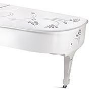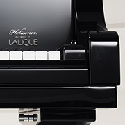 Cette collection spéciale de piano « Héliconia » met en valeur la signature de Lalique de par le contraste entre les finitions de cristal clair et dépoli. Véritable œuvre d’art, disponible en noir ou en blanc pour les pianos à queue, l’héliconia en cristal incolore semble être suspendue sur une tige d’argent. Un choix de placages dans des bois de haute qualité et dans différentes couleurs permettront à chacun des acquéreur une personnalisation unique.