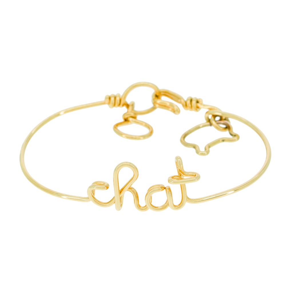 Cette collection ponctuée de petits mots doux est destinée à la fois aux enfants et à leur maman, avec deux tailles de bracelet différentes. Pour les enfants, on retrouve les mots « Amour », « Jolie » ou « Chat » à partir d’un fil de cuivre avec un petit charms Tartine et Chocolat: petit cœur, chat ou jolie nœud. Ce dernier se décline en fibule petit chat.