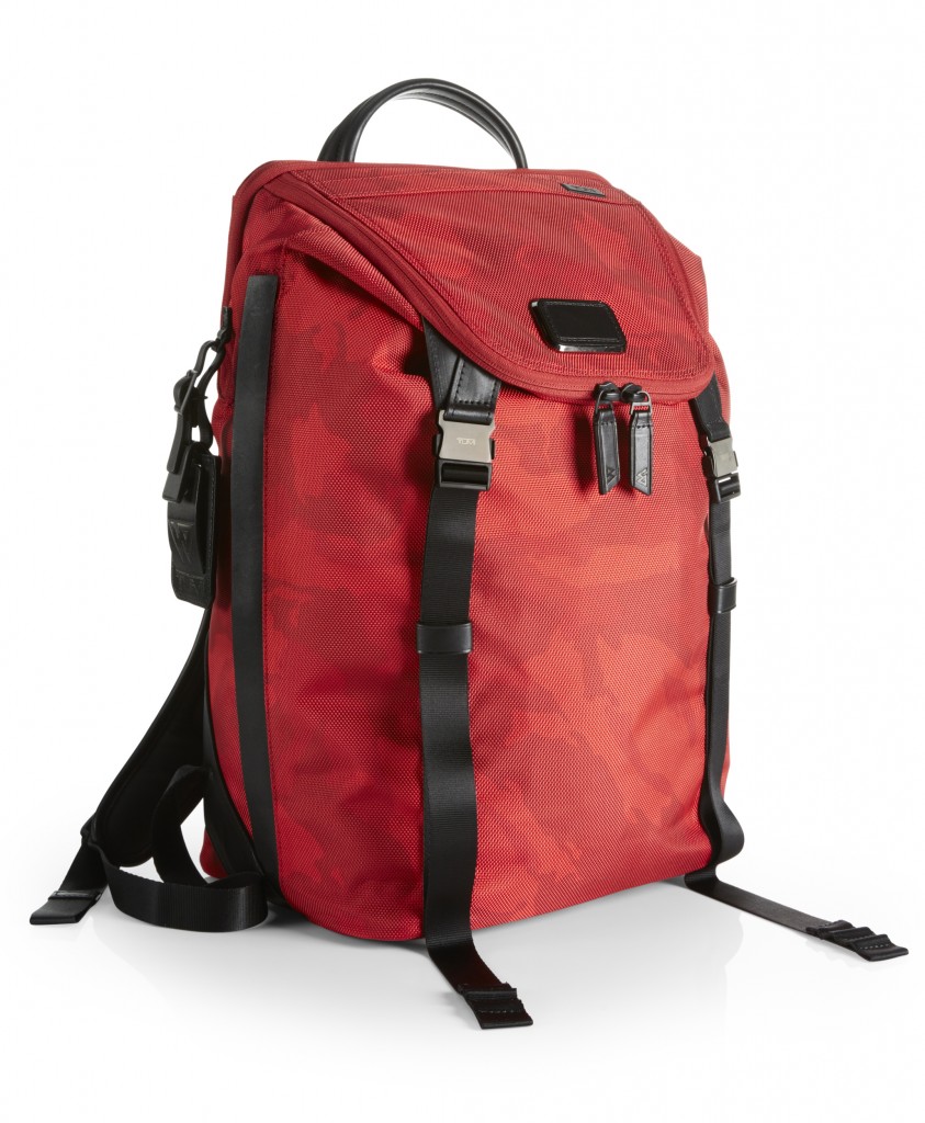 La collection TUMI x Russel Westbrook est composée de six pièces en nylon balistique, avec un coloris camouflage rouge tonique, accompagné de détails en cuir noir.