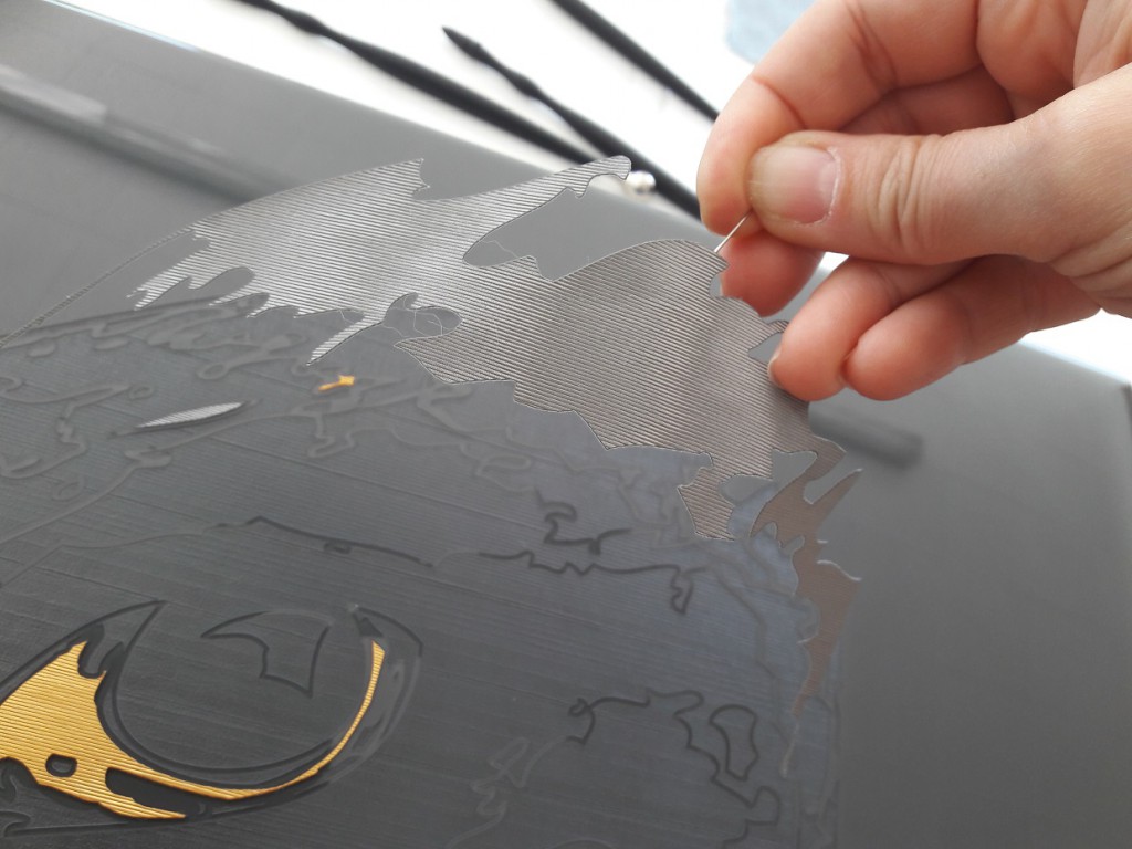 Après 18 mois d’expérimentations, elle met au point un savoir faire unique d’applications sur matières nobles.
