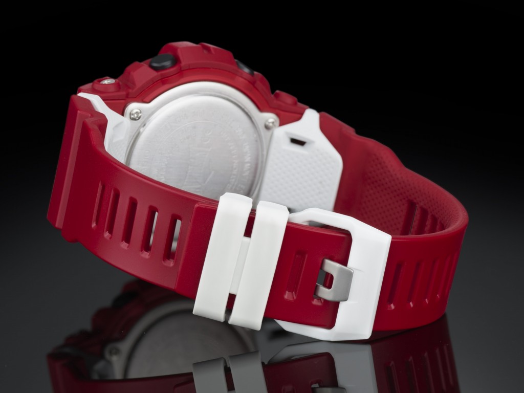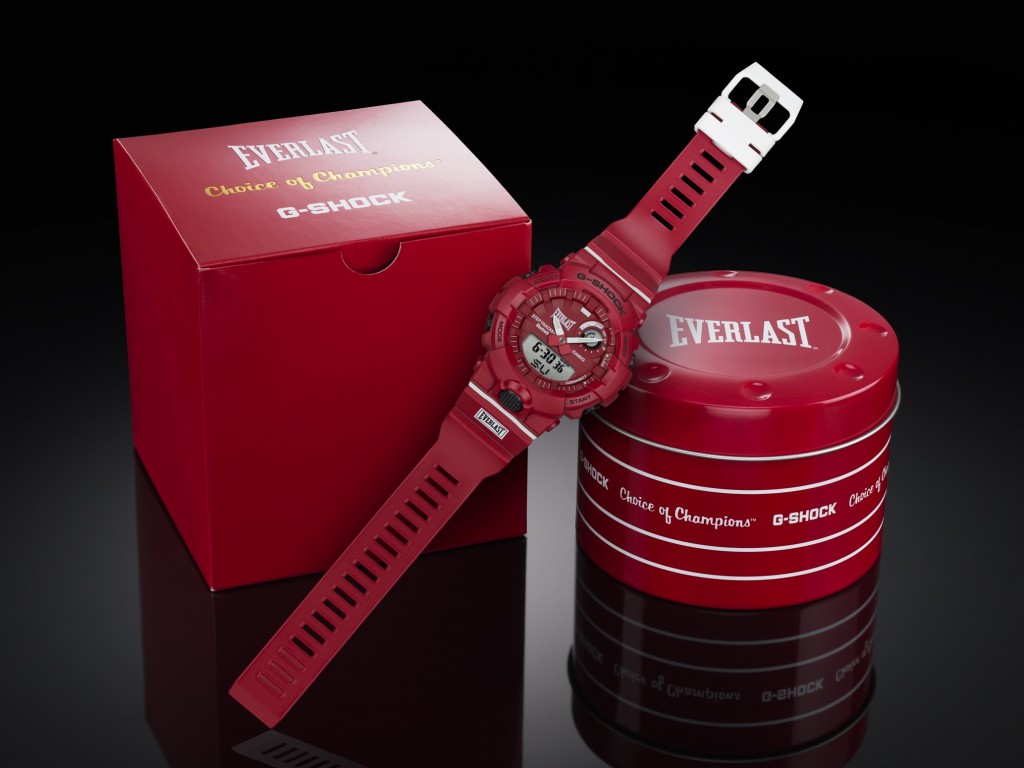 GBA-800EL, une montre dédiée aux activités sportives, fruit de la collaboration de la marque légendaire de boxe : G-Shock et de Everlast. Une couleur qui fait référence aux gants de boxe, le rouge puissant.